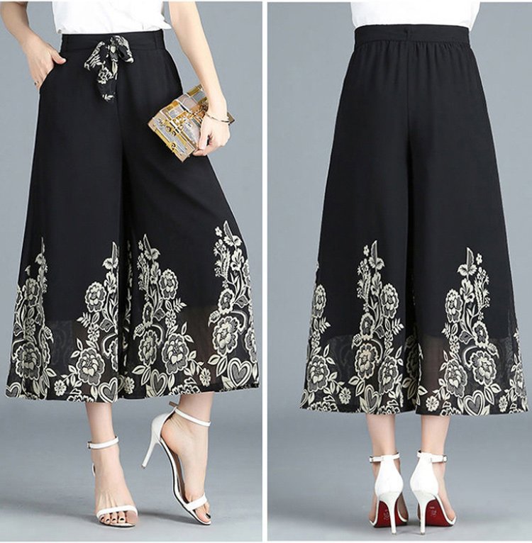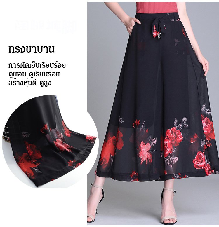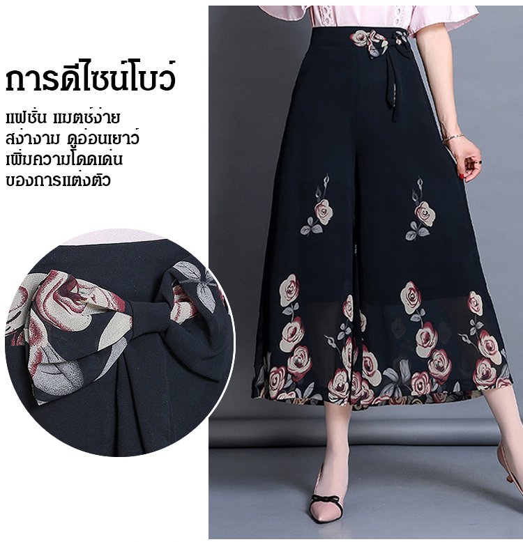 กางเกงคูลอตผ้าชีฟองผู้หญิง พิมพ์ลายดอกไม้