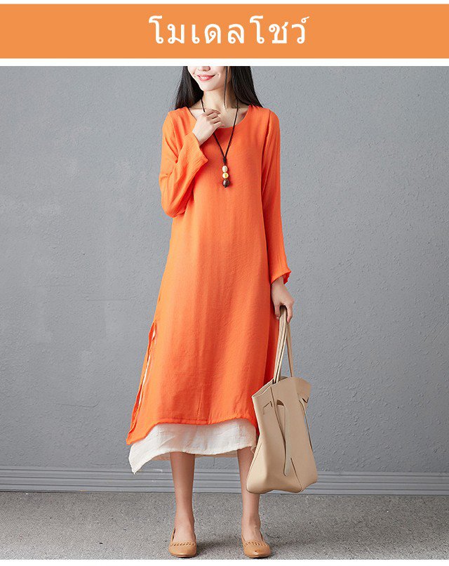 ชุดเดรสแขนยาวทรงหลวมย้อนยุคพลัสไซส์